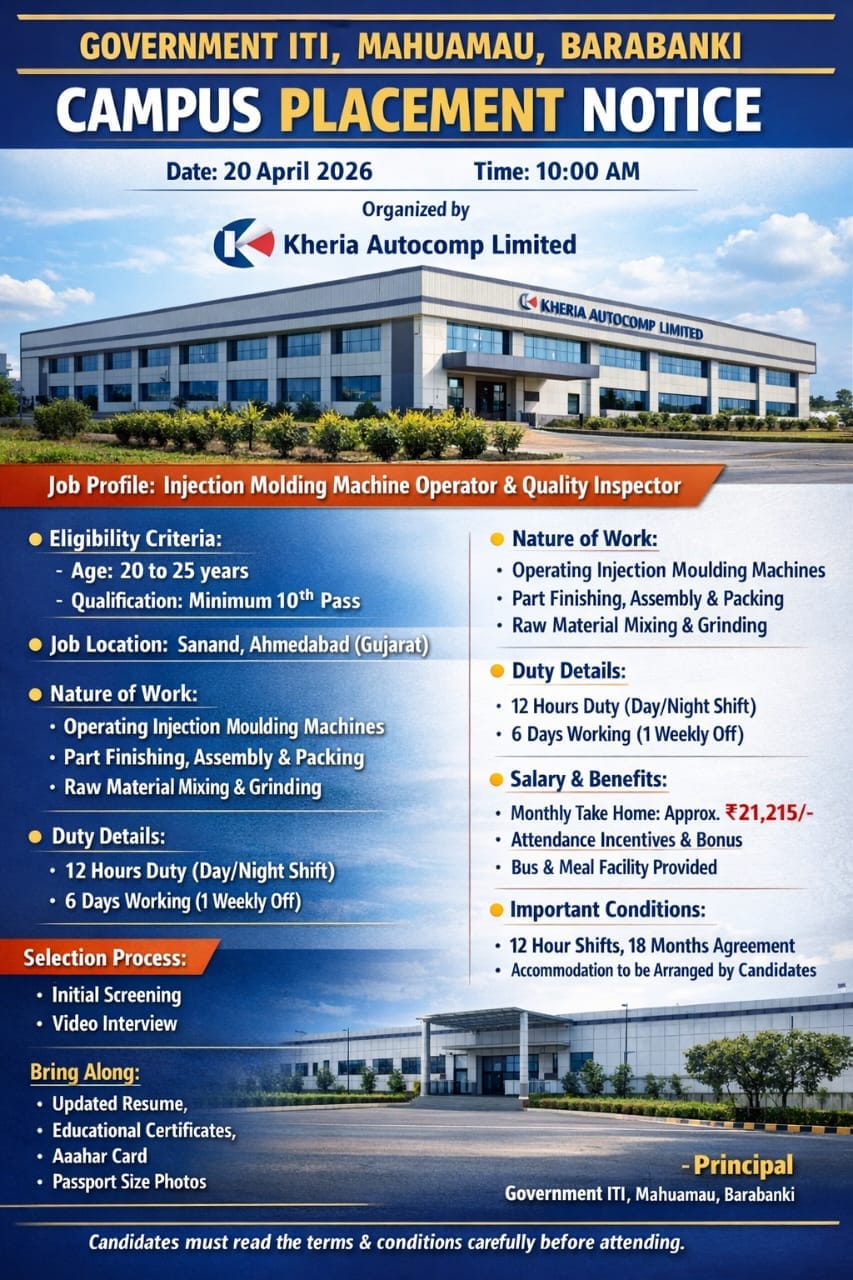 Kheria Autocomp Job 2026 through 10th Pass Vacancy and campus placement. Kheria Autocomp hiring 10th pass candidates. Salary up to ₹21,215 with benefits.