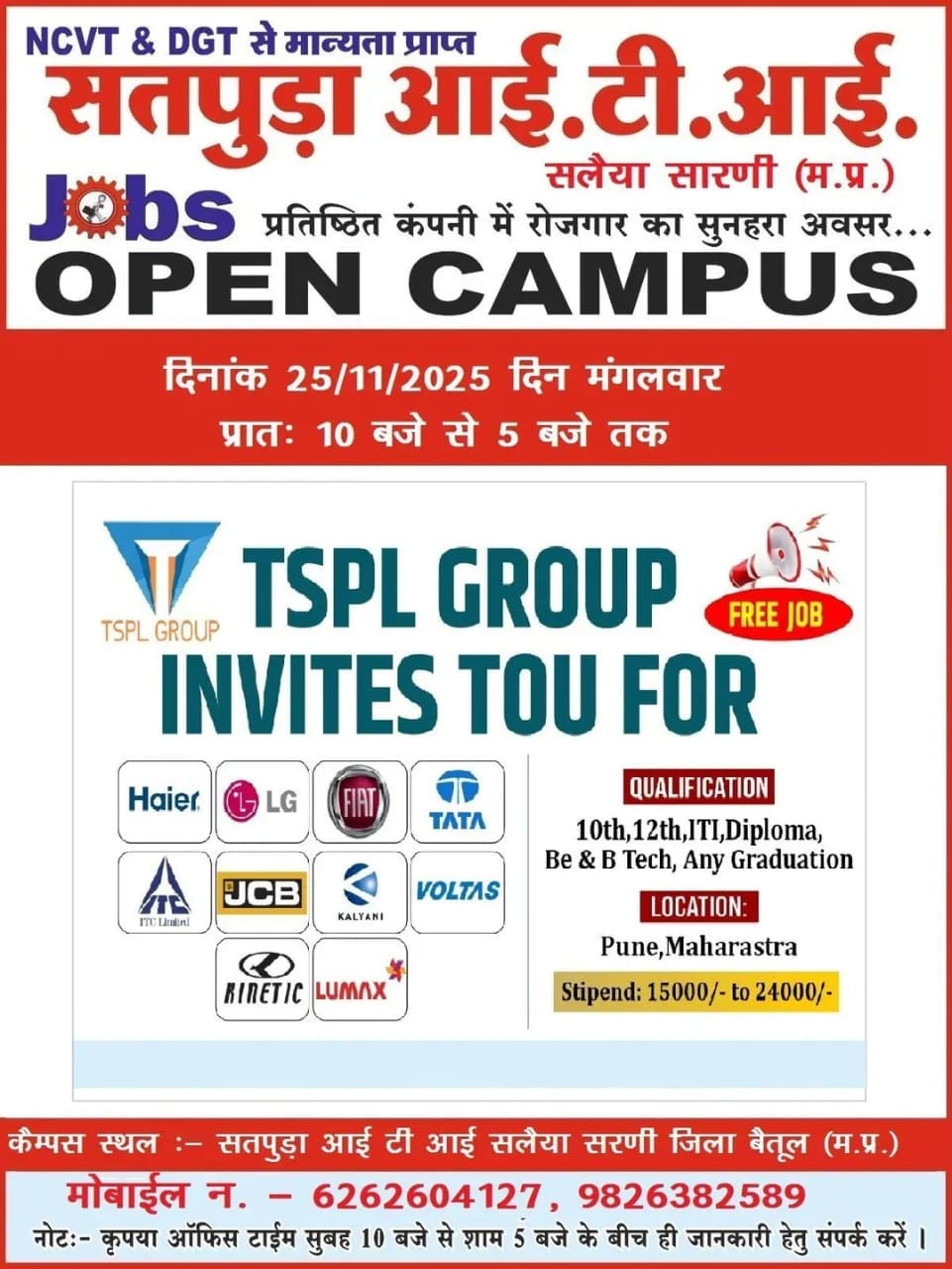 Campus Interview Location : Satpura ITI Salaiya Sarani, District Betul (Madhya Pradesh)