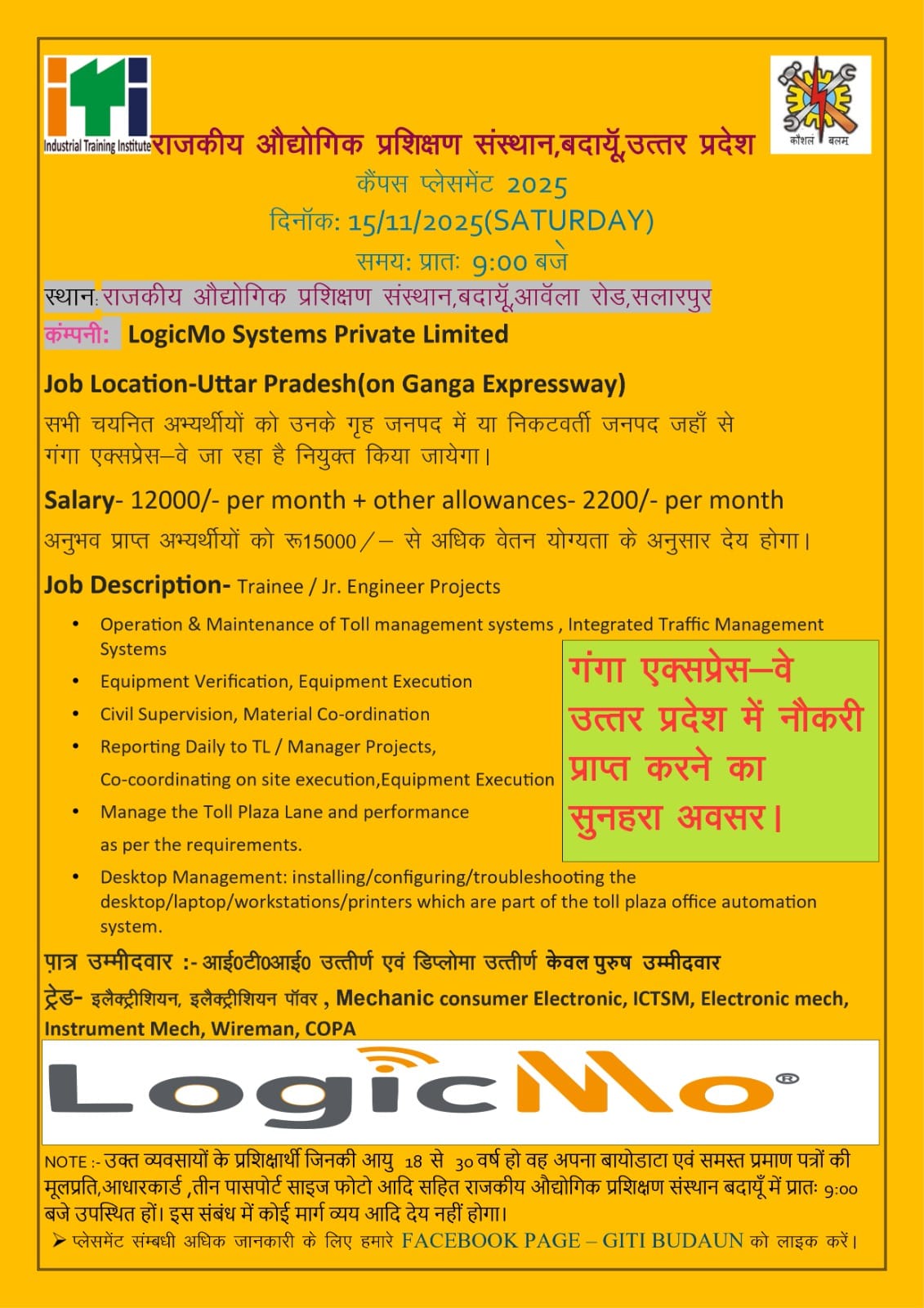 Campus Interview Location : Government Industrial Training Institute, Budaun, Arvela Road, Salarpur