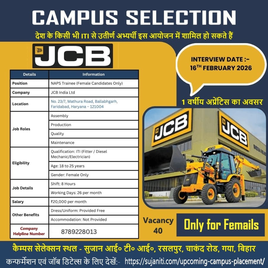 केवल Female ITI Pass उम्मीदवारों के लिए।