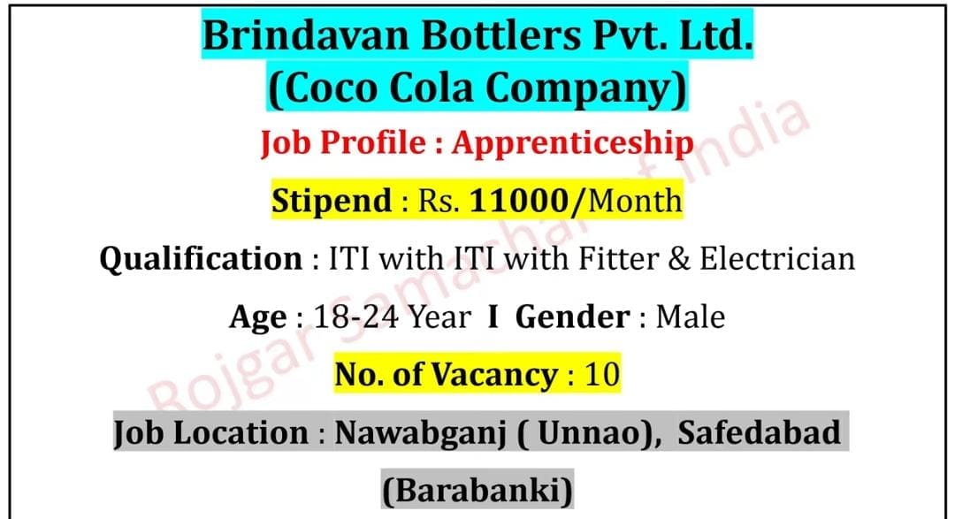 इस अप्रेंटिसशिप के माध्यम से उम्मीदवारों को Coca Cola जैसी बड़ी कंपनी के साथ काम करने का अनुभव मिलेगा, जिससे भविष्य में बेहतर जॉब अवसर प्राप्त करने में मदद मिलेगी।