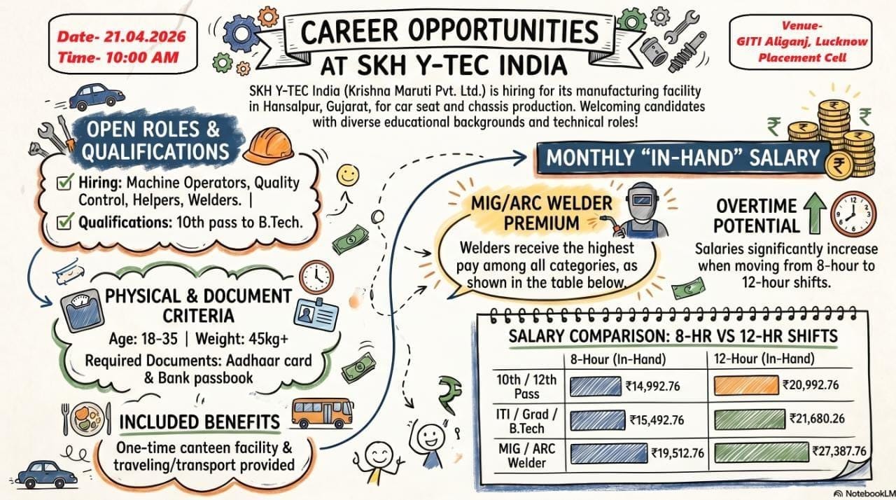 अगर आप नौकरी की तलाश में हैं और एक बेहतर करियर की शुरुआत करना चाहते हैं, तो Latest Placement In Lucknow 2026 में लखनऊ में आयोजित होने वाले लेटेस्ट प्लेसमेंट ड्राइव आपके लिए बेहतरीन अवसर लेकर आए हैं। इस भर्ती में 10वीं, 12वीं, ITI, ग्रेजुएट उम्मीदवारों के लिए विभिन्न पदों पर नियुक्ति की जा रही है। देश की प्रतिष्ठित कंपनियां जैसे SKH Y-TEC India युवाओं को सीधे जॉइनिंग का मौका दे रही हैं।