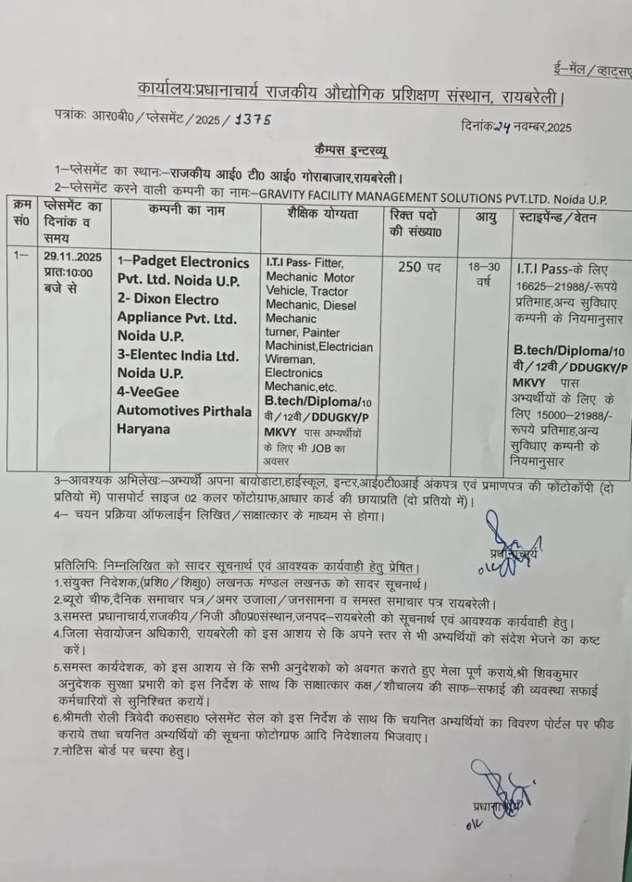 - उम्मीदवारों को सुबह 10:00 बजे तक Government ITI Gorabazar, Raebareli के परिसर में पहुँचना होगा।