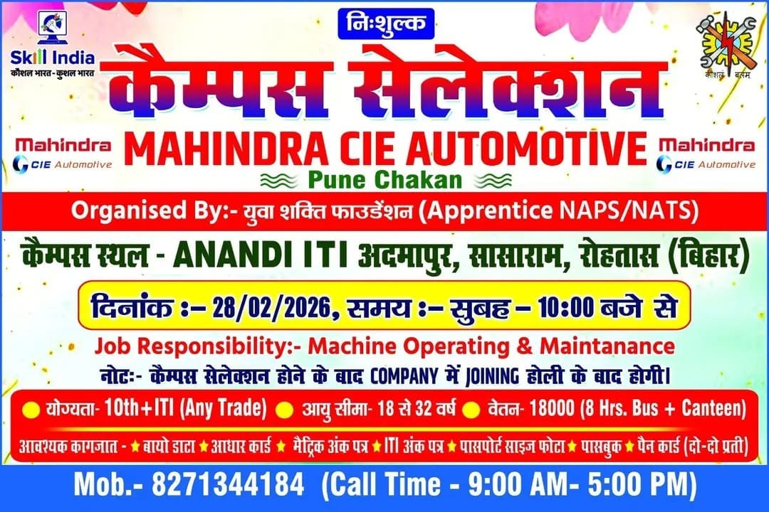Mahindra New Recruitment 2026 – एक प्रतिष्ठित ऑटोमोबाइल मैन्युफैक्चरिंग इकाई में अप्रेंटिस पदों पर चयन हेतु कैंपस ड्राइव आयोजित की जा रही है। यह चयन प्रक्रिया NAPS/NATS योजना के अंतर्गत संचालित होगी, जिसमें योग्य अभ्यर्थियों को मशीन ऑपरेशन एवं मेंटेनेंस विभाग में कार्य करने का अवसर दिया जाएगा।