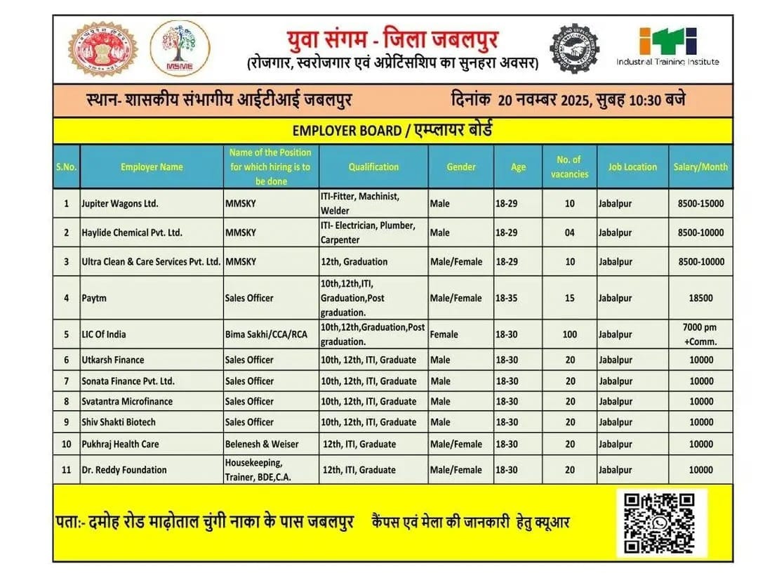 - उम्मीदवारों को सुबह 10:30 बजे तक Government Divisional ITI, Jabalpur के परिसर में पहुँचना होगा।
