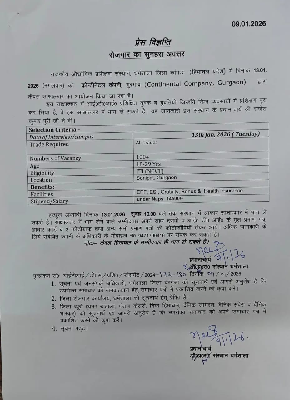- उम्मीदवारों को सुबह 10:00 बजे तक Government Industrial Training Institute, Dharamshala, के परिसर में पहुँचना होगा।