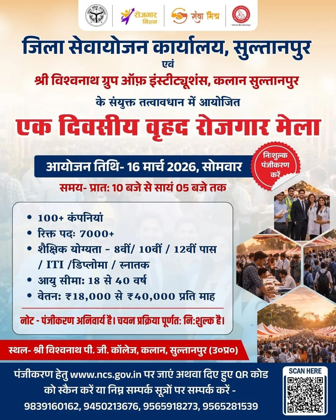 New Private Rojgar Mela 2026 in Sultanpur with 7000+ vacancies. 100+ companies hiring. Free registration.