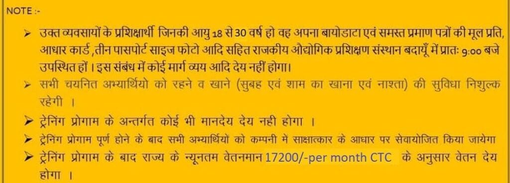 • उम्मीदवारों को सुबह 10:00 बजे तक Govt. ITI Budaun के परिसर में पहुँचना होगा।