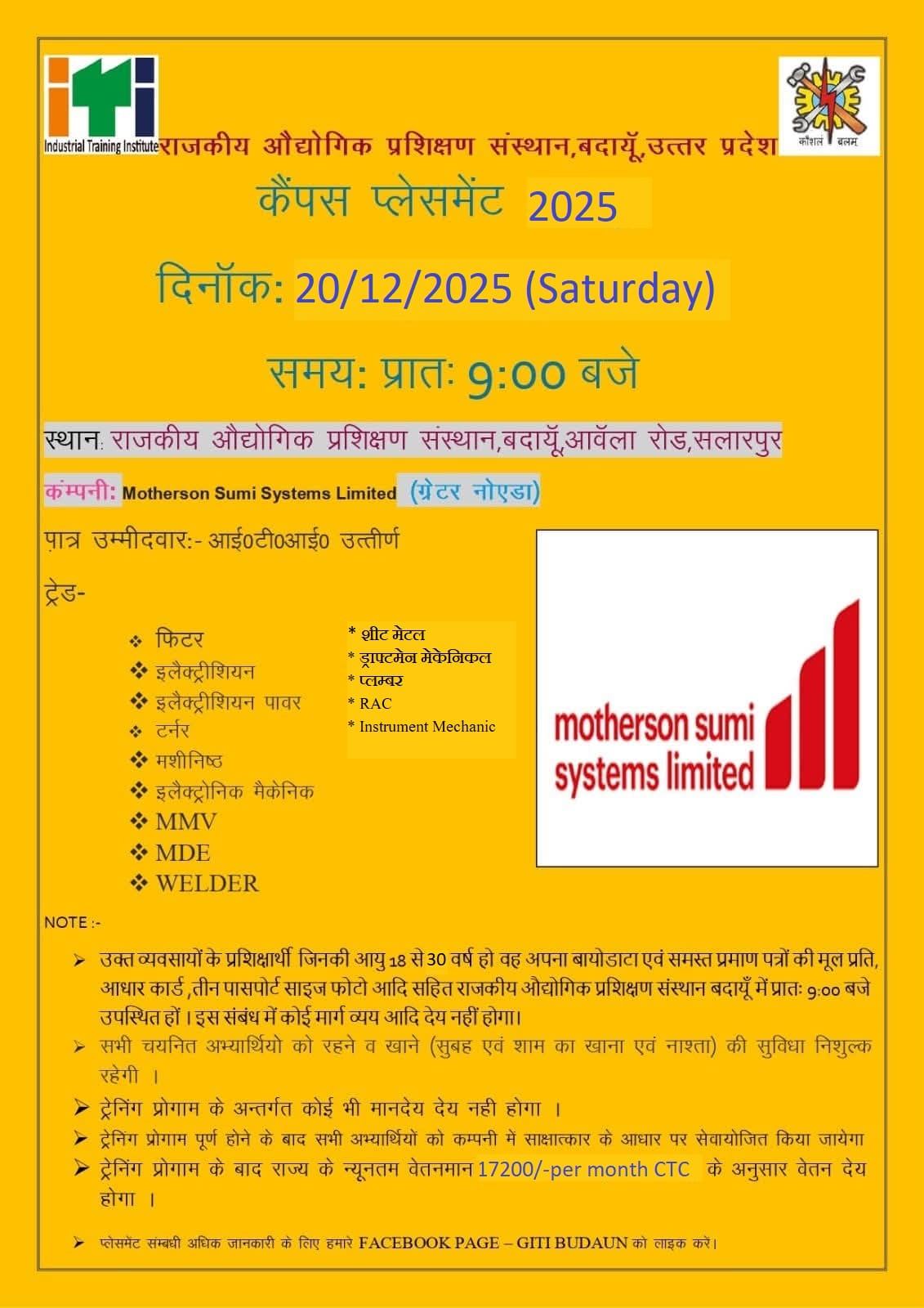 Campus Interview Location : Govt. ITI Budaun, Uttar Pradesh