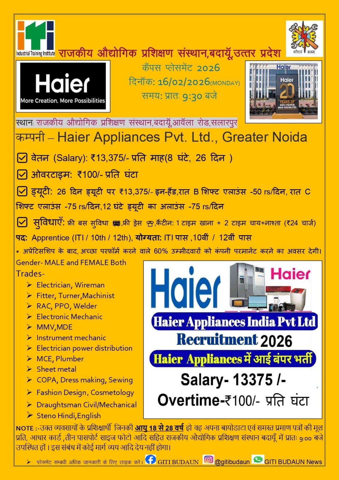 | Campus Location | Govt. ITI, Badaun (UP) |