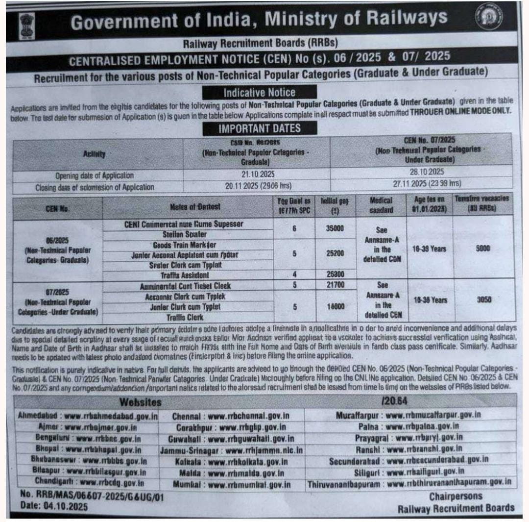RRB NTPC Recruitment 2025 Apply Online (21.10.2025) | Apply Online |