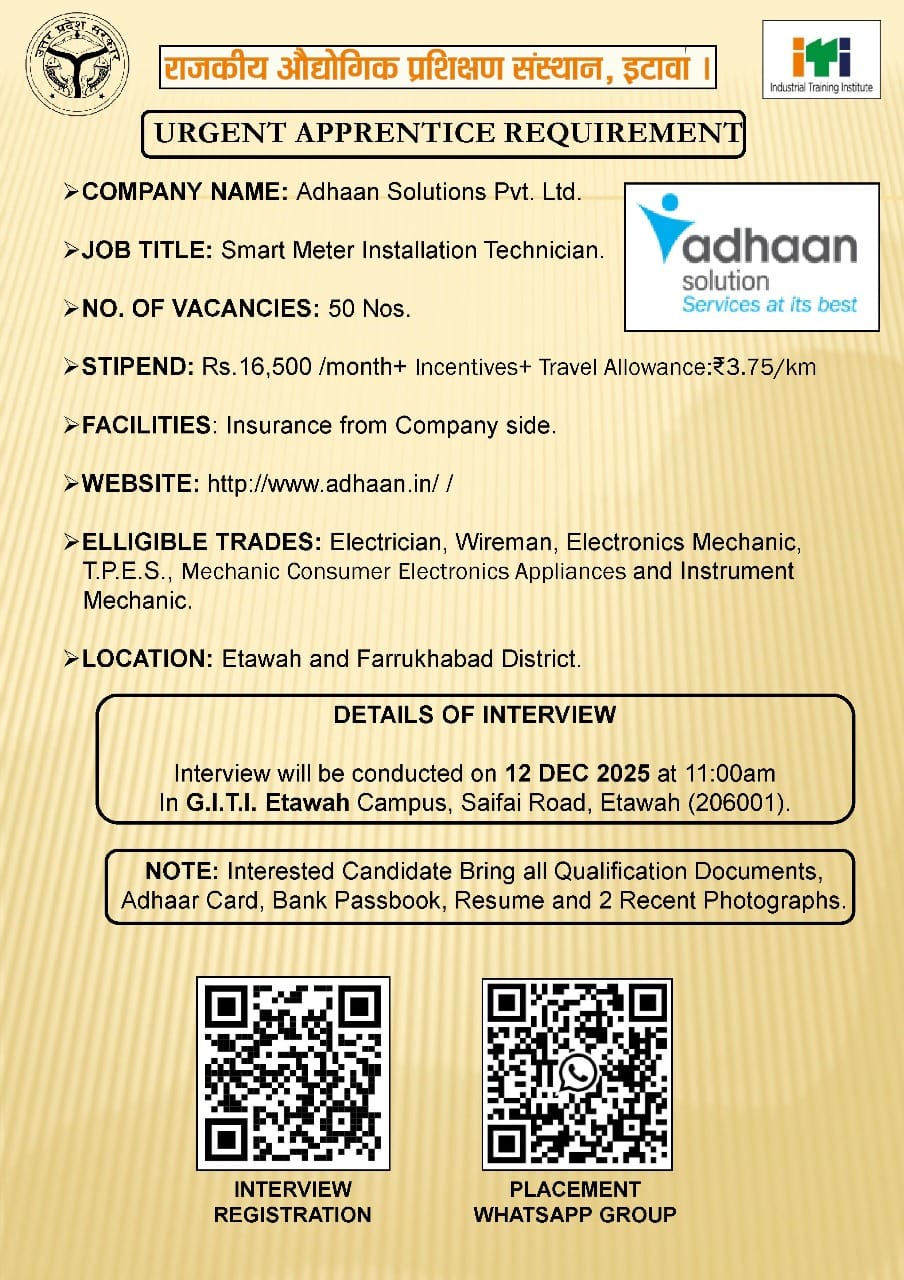 • उम्मीदवारों को सुबह 10:00 बजे तक Government ITI Etawah के परिसर में पहुँचना होगा।