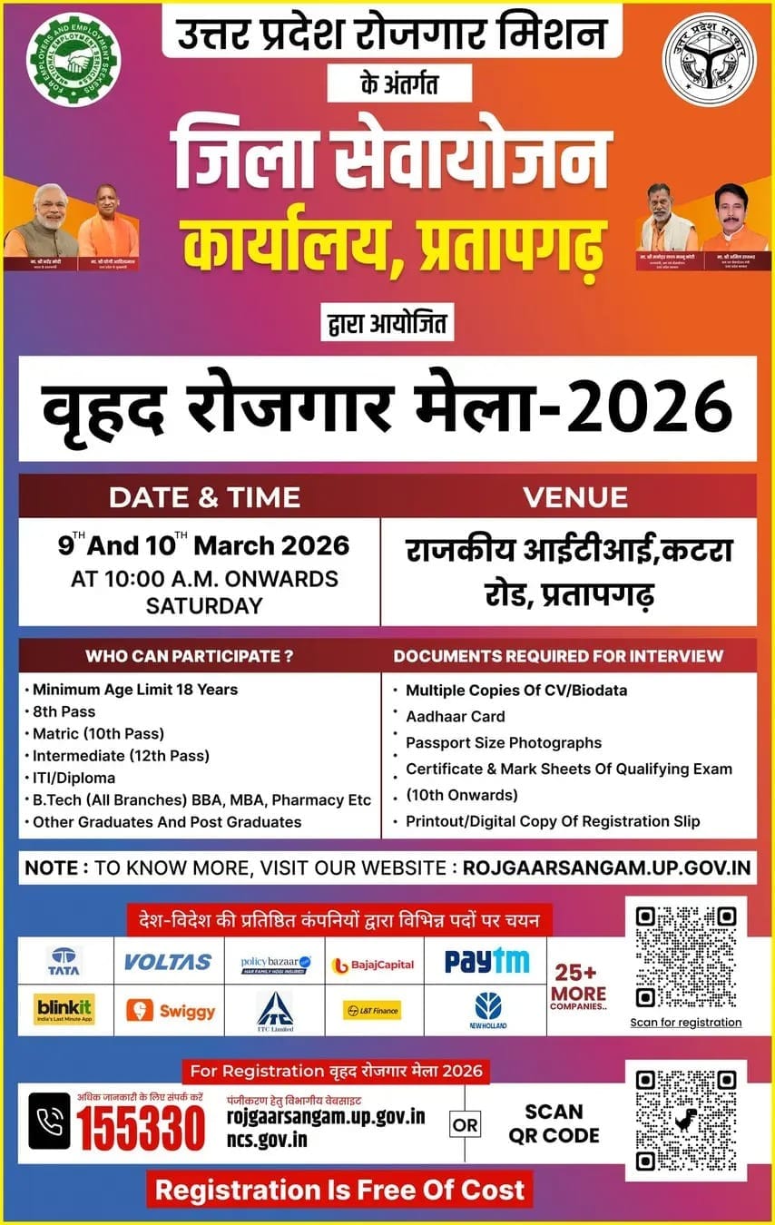 • उम्मीदवारों को सुबह 10:00 बजे तक Government ITI, Katra Road, Pratapgarh (Uttar Pradesh) के परिसर में पहुँचना होगा।